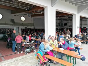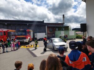Am 5. Mai feierten wir einen Tag der offenen Tür. An diesem Tag hatten Besucher die Möglichkeit, sich unsere Arbeit aus nächster Nähe anzusehen. Besonders spektakulär waren dabei die Schauübungen im Brandcontainer, bei welchem die Einsatzkräfte einem simulierten Zimmerbrand mit echter Flammenbildung ausgesetzt wurden. Das Vorgehen in diesem Fall konnte von den Besuchern auf einem Bildschirm mitverfolgt werden. Nicht nur Brandeinsätze gehören zum Aufgabenfeld der Feuerwehr, auch zu Verkehrsunfällen mit eingeklemmten Personen wird die Wehr regelmäßig alarmiert.Welches Equipment die Wehr für derartige Ergeignisse besitzt und wie dieses eingesetzt wurd, wurde ebenfalls im Rahmen einer Schauübung demonstriert. Neben den Schauübungen informierten wir über Ausrüstung und Fahrzeuge, bei Letzteren durfte man auch mitfahren. Dies hat die Nachwuchskräfte von Morgen mindestens genauso begeistert wie die XXL Feuerwehr Hüfburg.Wer die eigenen Fähigkeiten beim Brandschutz verbessern wollte, hatte die Möglichkeit beim Feuerlöschertraining selbst aktiv zu werden und ein Feuer zu löschen.Für die Stärkung zwischen den einzelnen Programmpunkten gab es eine große Auswahl an selbstgebackenen Kuchen, sowie Gegrilltes. Insgesamt war es ein gelungener Tag mit zahlreichen Besuchern und guter Stimmung, die Wehr dankt für die Unterstützung und den Besuch der Bürger.
