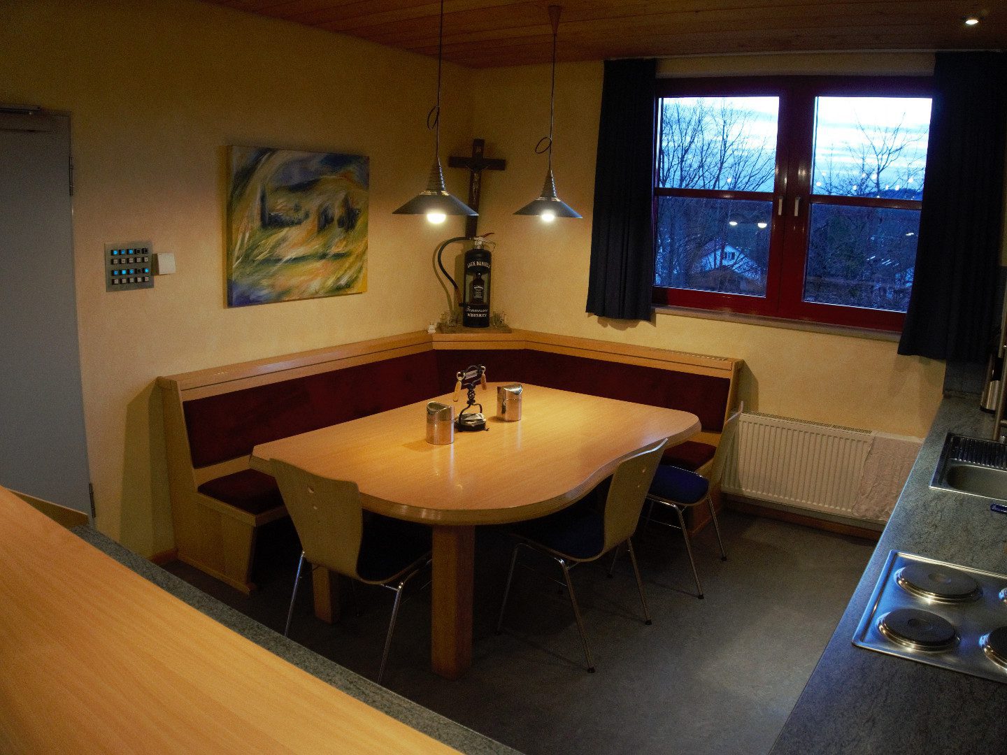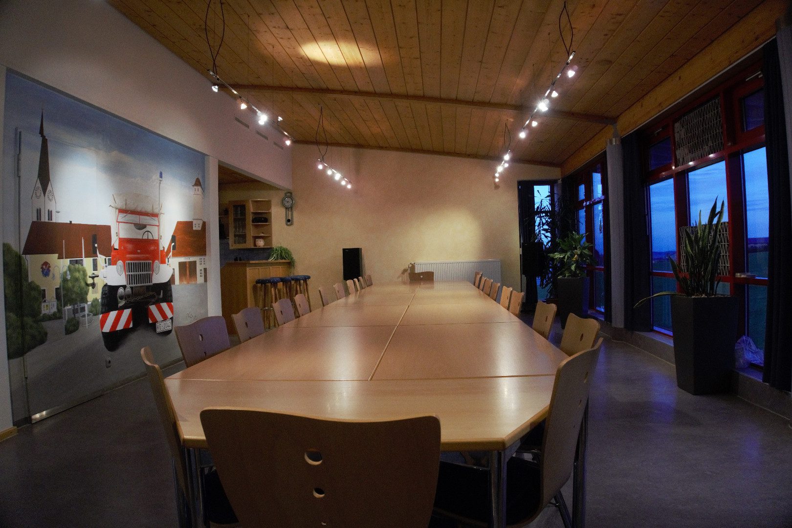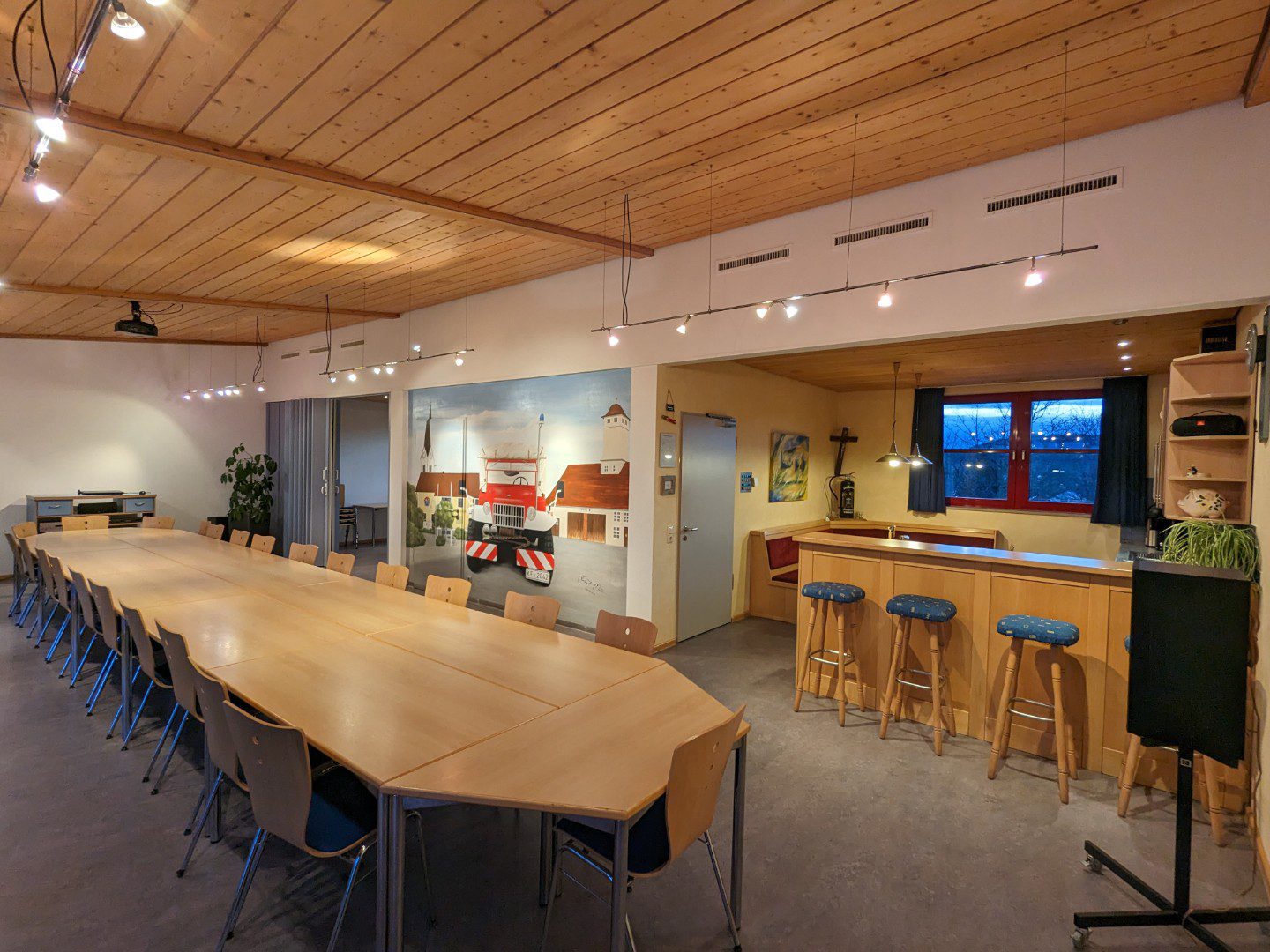 Hier finden im Winter theortische Unterrichte statt. Dank unseren Kameraden Norbert Maier herrscht hier ein gemütliches Ambiente mit perfekt abgestimmten Farben, verzierte Dachbalken und Säulen. Auch das große Wandgemälde von unserem Dodge stammt von ihm. Als „Easter Egg“ sind Personen, die besonderes Engagement beim Hausbau gezeigt haben, darin verewigt.