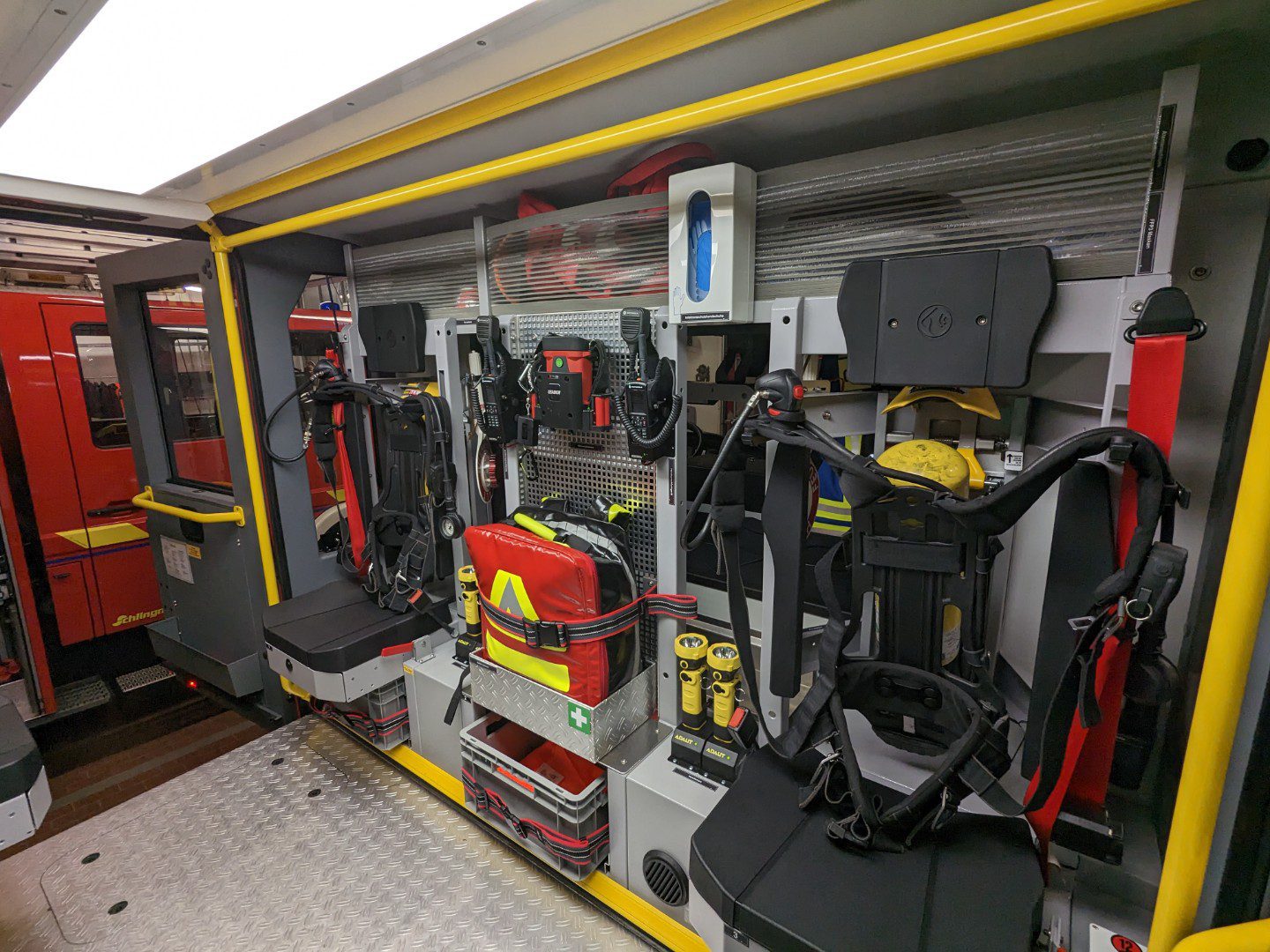 Unser TLF dient primär zum Transport von Löschwasser, um die Zeit bis die Wasserversorgung steht zu überbrücken. Es finden sich aber auch Geräte zur technischen Hilfeleistung und Innenangriff an Bord.